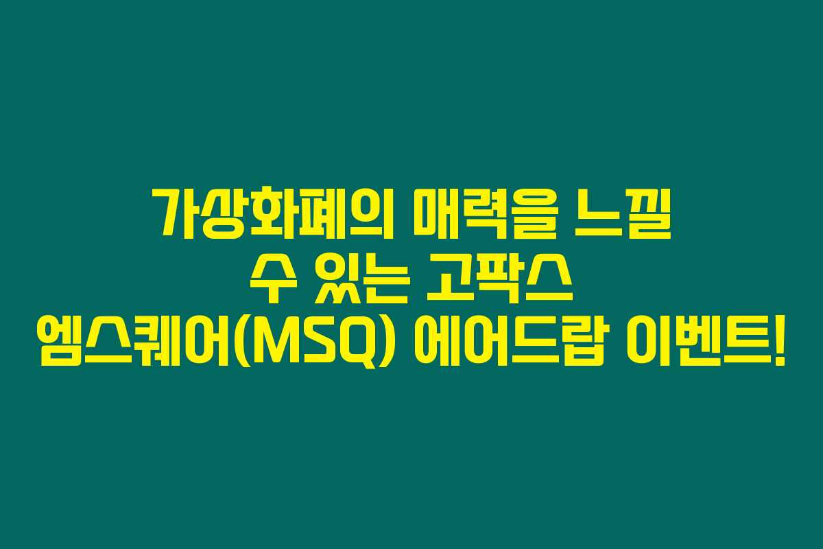 2025년 5월 22일부터 6월 10일까지, 고팍스에서 진행되는 엠스퀘어(MSQ) 30,000USDT 에어드랍 이벤트를 통해 가상화폐에 입문해보세요. 고팍스는 거래소 이용자들에게 다양한 기회를 제공하며, 특히 이번 이벤트는 소액 투자로도 손쉽게 참여할 수 있는 절호의 기회랍니다. 아래를 읽어보시면, 이 이벤트에 대한 자세한 정보와 함께 안전하게 활용하는 팁을 알 수 있을 거예요.