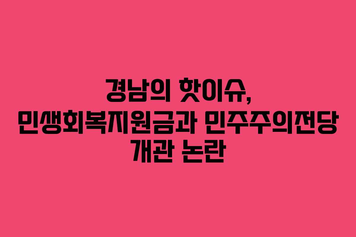 이번 주 경남의 주요 이슈를 살펴보면, 변광용 거제시장의 민생회복지원금 지급과 대한민국 민주주의전당 개관 일정 연기가 있습니다. 이 두 가지 주제는 지역 주민과 정치계에서 큰 관심을 받고 있습니다.