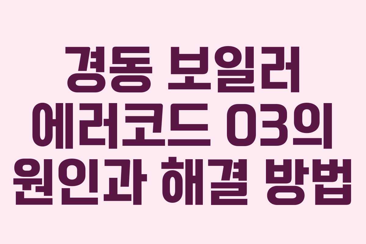 겨울철 보일러의 고장은 매우 불편한 상황입니다. 특히 한파가 몰아치는 날씨에는 보일러가 제대로 작동하지 않으면 큰 어려움을 겪게 됩니다. 이 글에서는 경동 보일러의 에러코드 03에 대한 원인과 해결 방법을 자세히 살펴보겠습니다.
