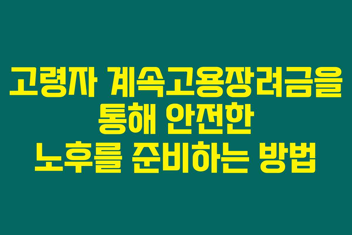 고령자 계속고용장려금제도를 통해 고령 근로자의 안정적인 일자리 유지와 기업의 경제적 부담을 덜어줄 수 있습니다. 안전한 노후를 위한 중요한 정책이니, 관련 정보를 잘 파악해보세요.