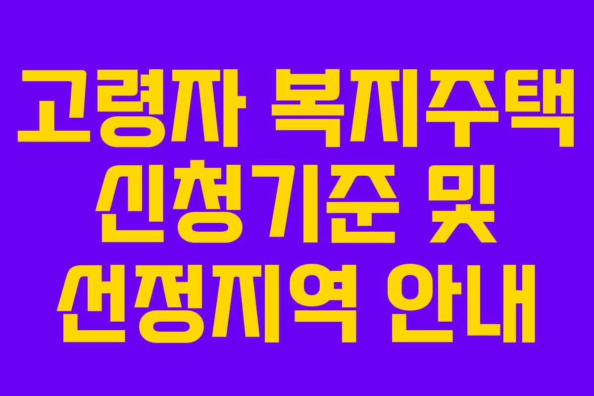 2023년 기준으로 고령자 복지주택에 신청하기 위해서는 다음 조건을 충족해야 합니다: