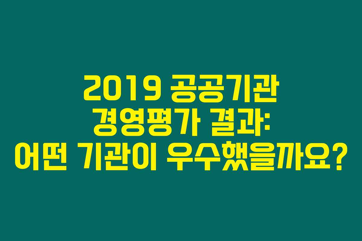 2019 공공기관 경영평가 결과: 어떤 기관이 우수했을까요?