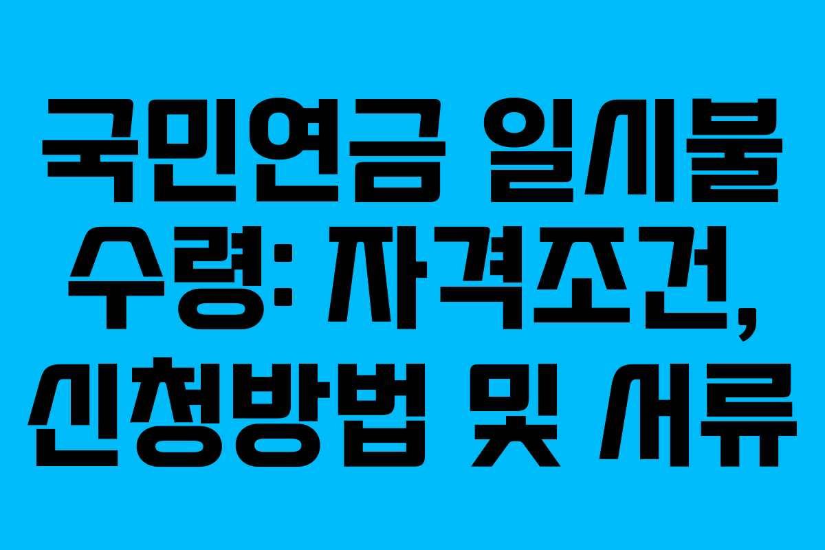 일시불 수령을 원할 경우 반드시 국민연금공단에 신청해야 하며, 자격조건을 충족하지 못할 경우 수령이 불가능하다는 점을 유의해야 합니다.