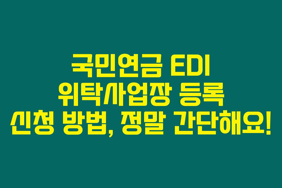 국민연금 EDI 위탁사업장 등록을 고려하고 계신가요? 아직 방법을 잘 모르겠다면 초보세무가 준비한 내용을 아래를 읽어보시면 큰 도움이 될 거예요. 국민연금EDI 업무대행기관으로 등록이 끝났다면 이제는 위탁사업장 등록을 할 차례랍니다. 이 과정을 간단하게 정리해봤으니 놓치지 말고 따라 해보세요!