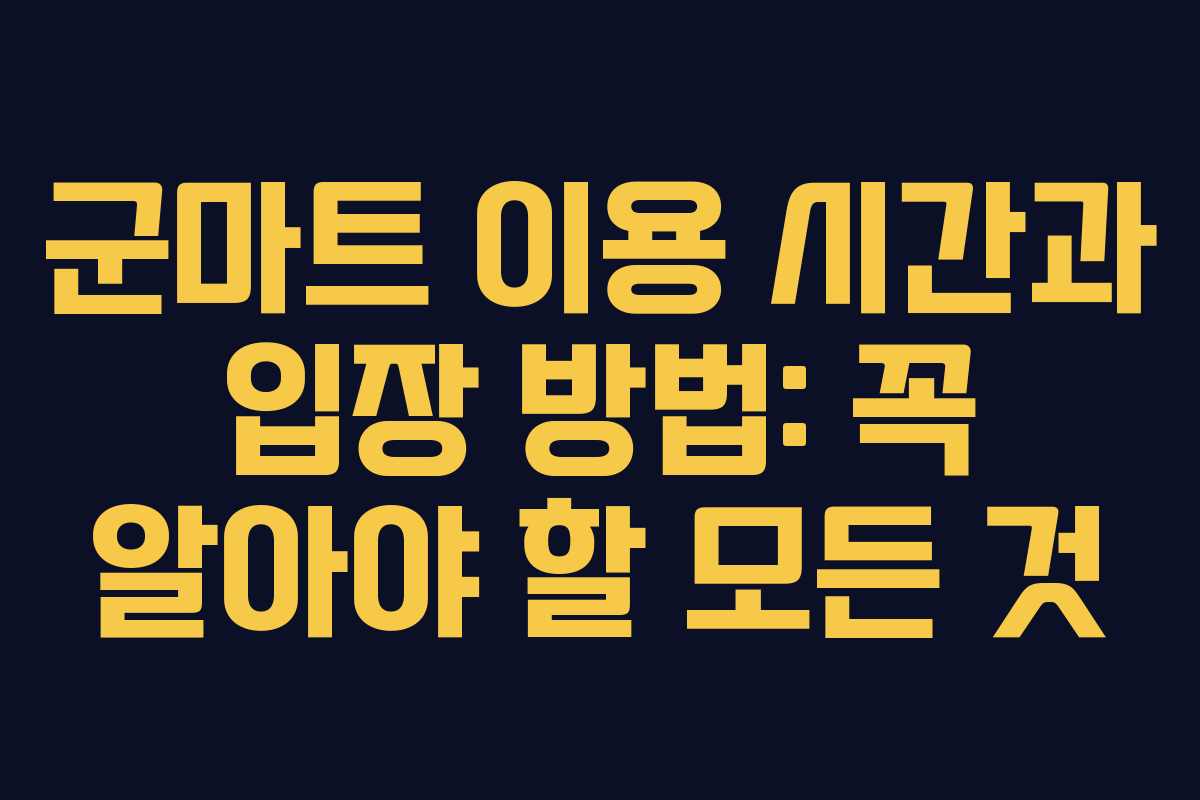 최근 고물가 시대에 군마트(국군복지단 마트)에 대한 관심이 커지고 있습니다. 군마트는 군인과 특정 대상을 위한 쇼핑 공간으로, 물가 부담을 줄일 수 있는 좋은 기회를 제공합니다. 이번 글에서는 군마트의 이용 시간, 입장 조건, 그리고 일반인의 이용 가능 여부를 상세히 알아보겠습니다.