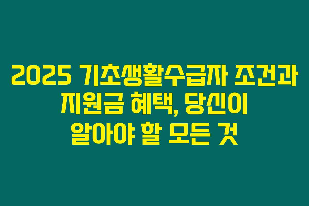 제가 직접 알아본 바로는 2025년 기초생활수급자 조건이 크게 바뀌면서 많은 저소득층 가구에게 보다 안정된 삶을 제공할 수 있는 기회가 생겼어요. 이번 글에서는 기초생활수급자의 조건과 혜택, 신청 방법 등을 자세히 알아보도록 할게요. 아래를 읽어보시면 2025년 변동 사항들을 알기 쉽게 정리해드릴게요.