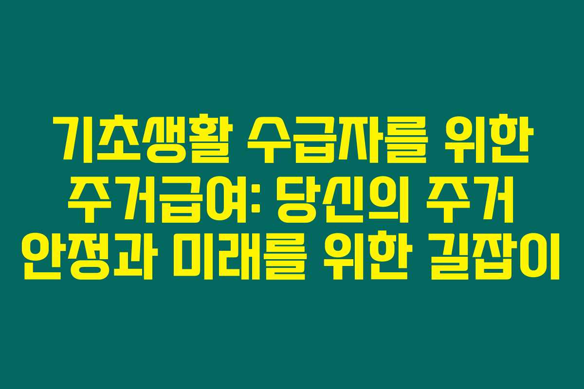 기초생활 수급자를 위한 주거급여: 당신의 주거 안정과 미래를 위한 길잡이