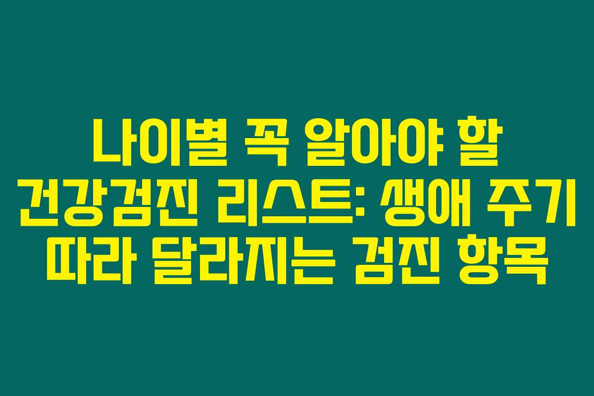 건강을 지키기 위한 첫걸음은 정기적인 건강검진에서 시작된다고 해도 과언이 아닐까요? 나이에 따라 필요한 건강검진 항목이 달라져, 적기에 필요한 검사를 누락하지 않도록 주의해야 해요. 아래를 읽어보시면 연령대별 필수 건강검진 항목과 생애 주기별로 어떤 검사가 필요한지에 대한 내용이 상세히 설명되어 있어요.