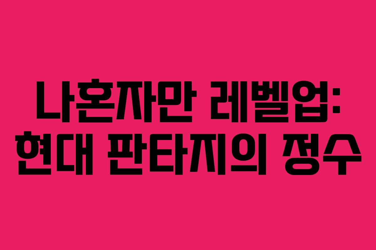 ‘나혼자만 레벨업’은 현대 판타지 장르에서 큰 인기를 끌고 있는 웹툰입니다. 원작 추공의 소설을 바탕으로 장성락의 뛰어난 작화와 현군, 기소령의 각색으로 탄생한 이 작품은 2018년부터 2021년까지 카카오페이지와 카카오웹툰에서 연재되었습니다.