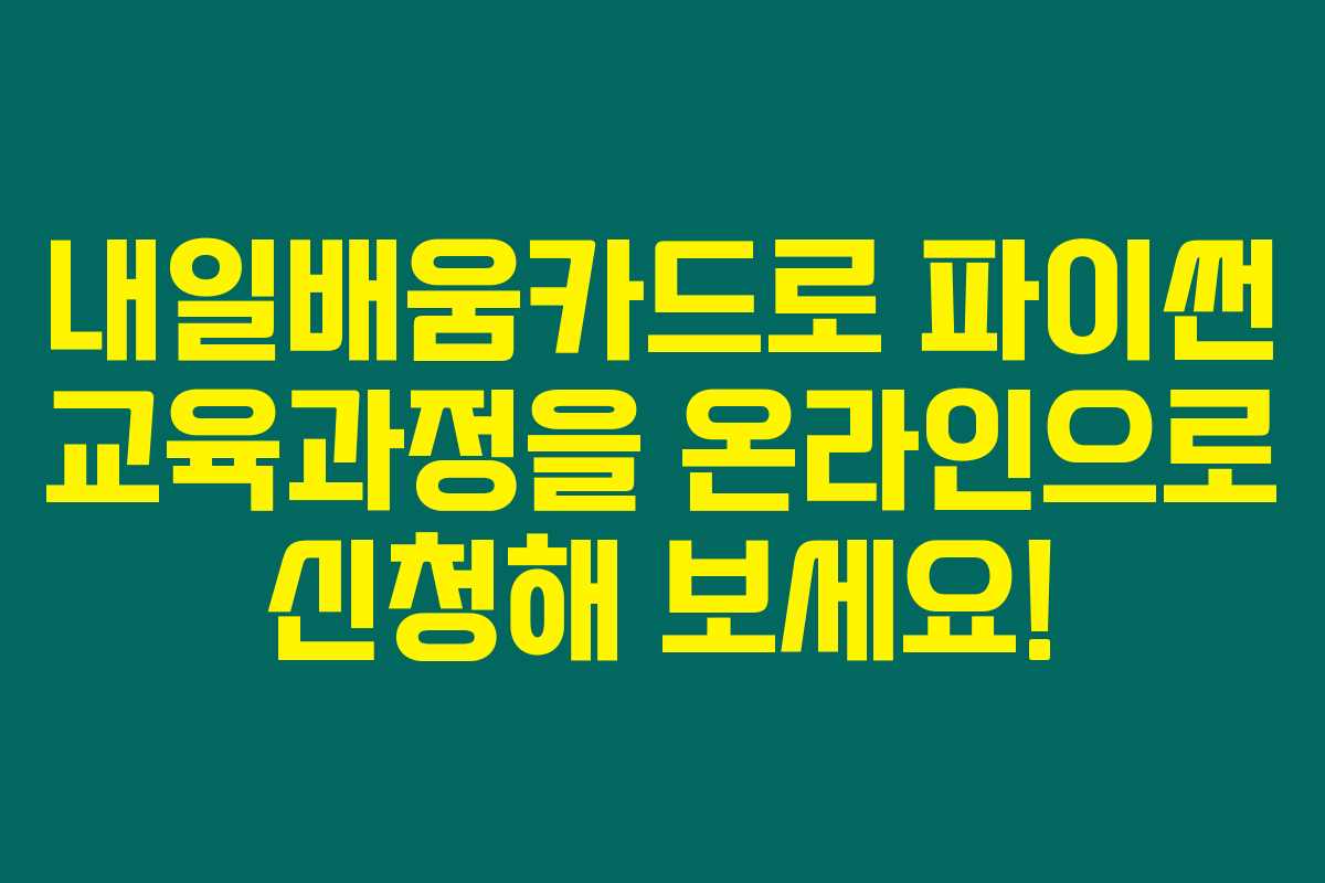 제가 직접 경험해 본 바로는, 내일배움카드를 이용해 파이썬 교육과정을 온라인으로 쉽게 신청할 수 있답니다. 제 경험을 기반으로 다양한 정보를 아래를 읽어보시면 알차게 정리해 보았습니다.