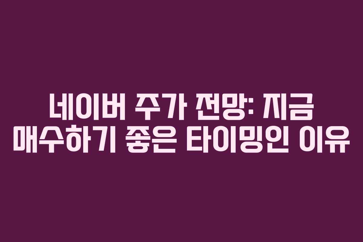 최근 네이버 주가는 고점 대비 반토막이 나며 어려운 상황에 놓여 있습니다. 하지만 현재는 매수하기 좋은 시점이라는 분석이 있습니다. 이번 글에서는 네이버 주가의 현황과 향후 전망에 대해 살펴보겠습니다.
