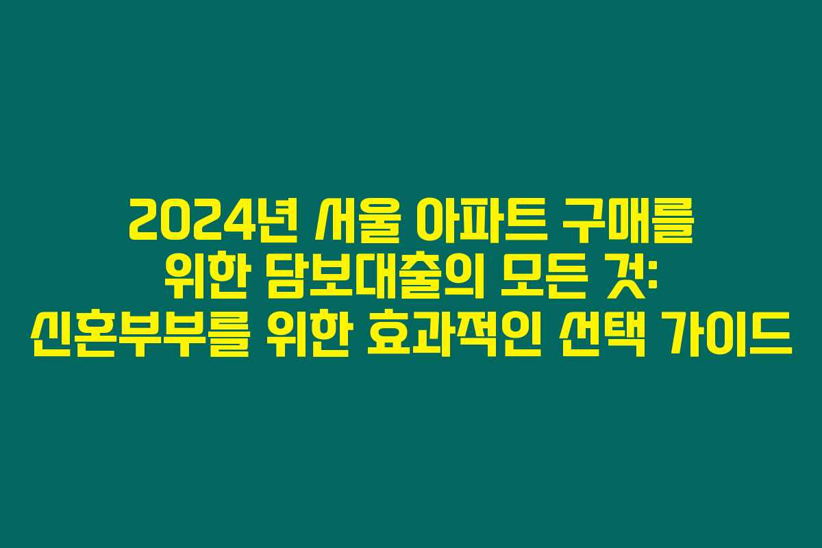 2024년 서울 아파트 구매를 위한 담보대출의 모든 것: 신혼부부를 위한 효과적인 선택 가이드