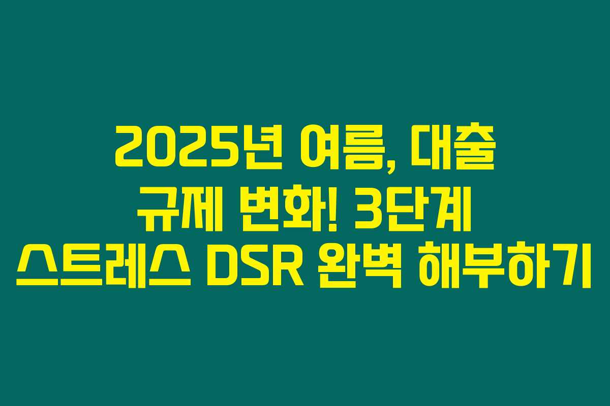 현재의 DSR 규제는 연소득의 40%를 넘지 않아야 합니다. 즉, 모든 금융기관에서 DSR이 40%를 초과하는 대출은 허용되지 않죠. 이러한 규제는 가계 부채의 과중을 막고 금융사고를 예방하기 위한 방안으로 도입되었습니다. 하지만 2025년 7월부터는 상황이 달라지죠.