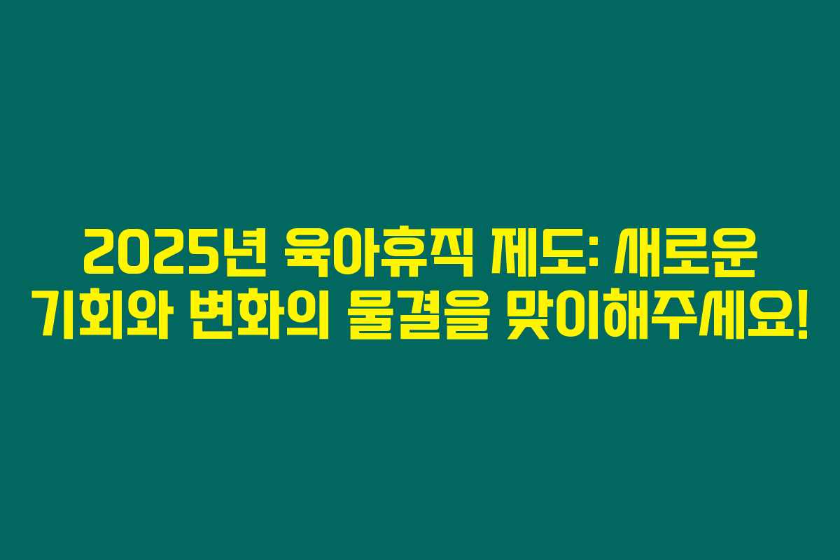 2025년부터는 사후지급금 제도가 폐지되며, 육아휴직 기간 동안 급여가 100% 지급된다는 점이 정말 좋은 변화라고 생각해요.