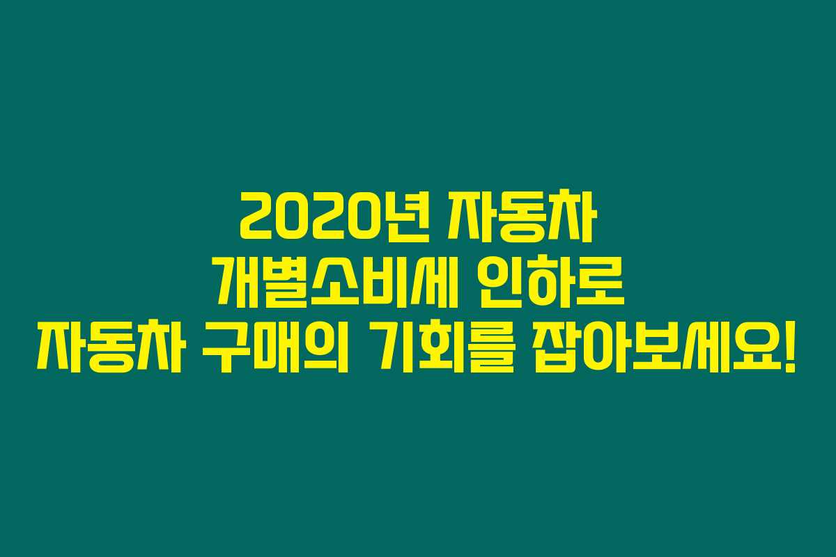 2020년 자동차 개별소비세 인하로 자동차 구매의 기회를 잡아보세요!