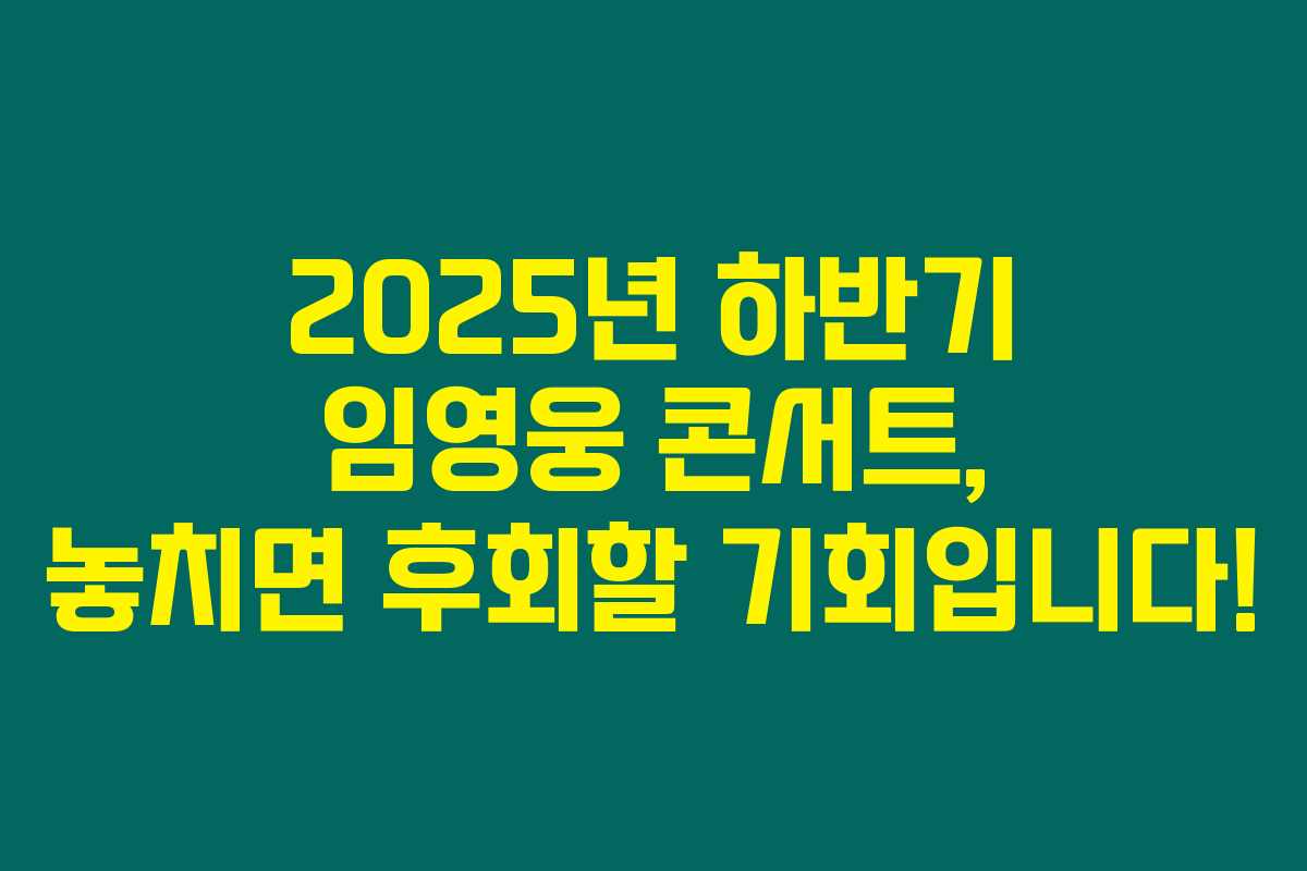 임영웅의 콘서트는 매년 5월부터 12월까지 진행되는 경우가 많아요. 실제 2025년 하반기 일정은 아직 공식 발표되지 않았지만, 과거의 공연 일정과 최근 트렌드를 바탕으로 예측해 보았어요. 그의 콘서트는 서울, 부산, 대구, 인천 등에서 진행될 예정입니다.