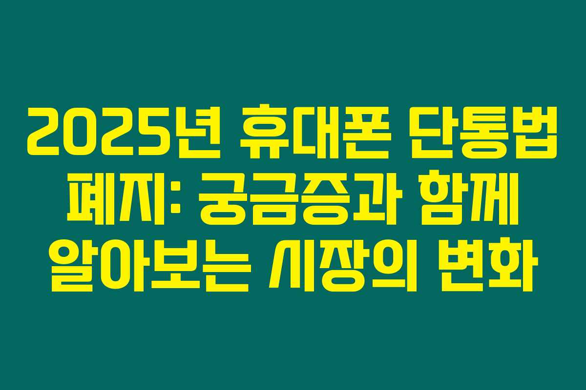 단통법이 2025년부터 폐지된다는 소식은 휴대폰 구매를 고려 중인 소비자들에게 중요한 소식이에요. 이제 보조금 경쟁이 본격화 될 텐데, 그때까지 어떤 정보가 필요할지에 대해 꼭 알아두세요.
