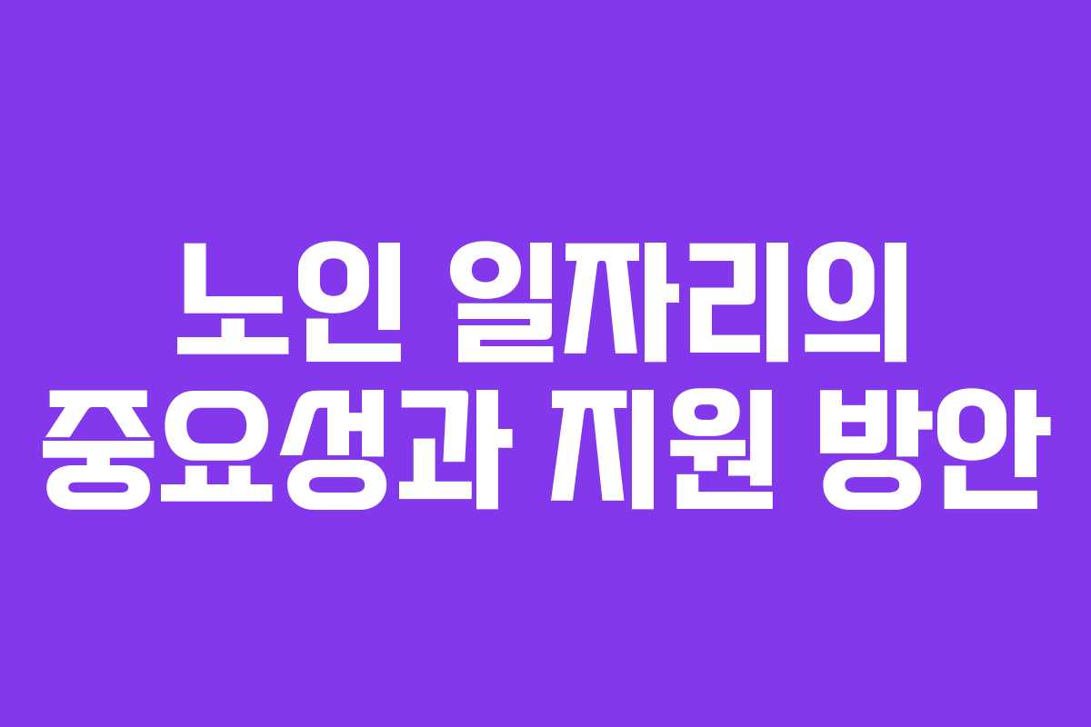노인 일자리는 노년층의 경제적 자립과 정신적 안녕에 기여하며, 사회 전반적으로 노년층의 경험과 지혜를 활용할 수 있는 기회를 제공합니다. 따라서 노인들의 일자리 찾기를 지원하는 것은 매우 중요하며, 다양한 방법을 활용하여 적절한 일자리를 찾는 데 도움이 될 것입니다.
