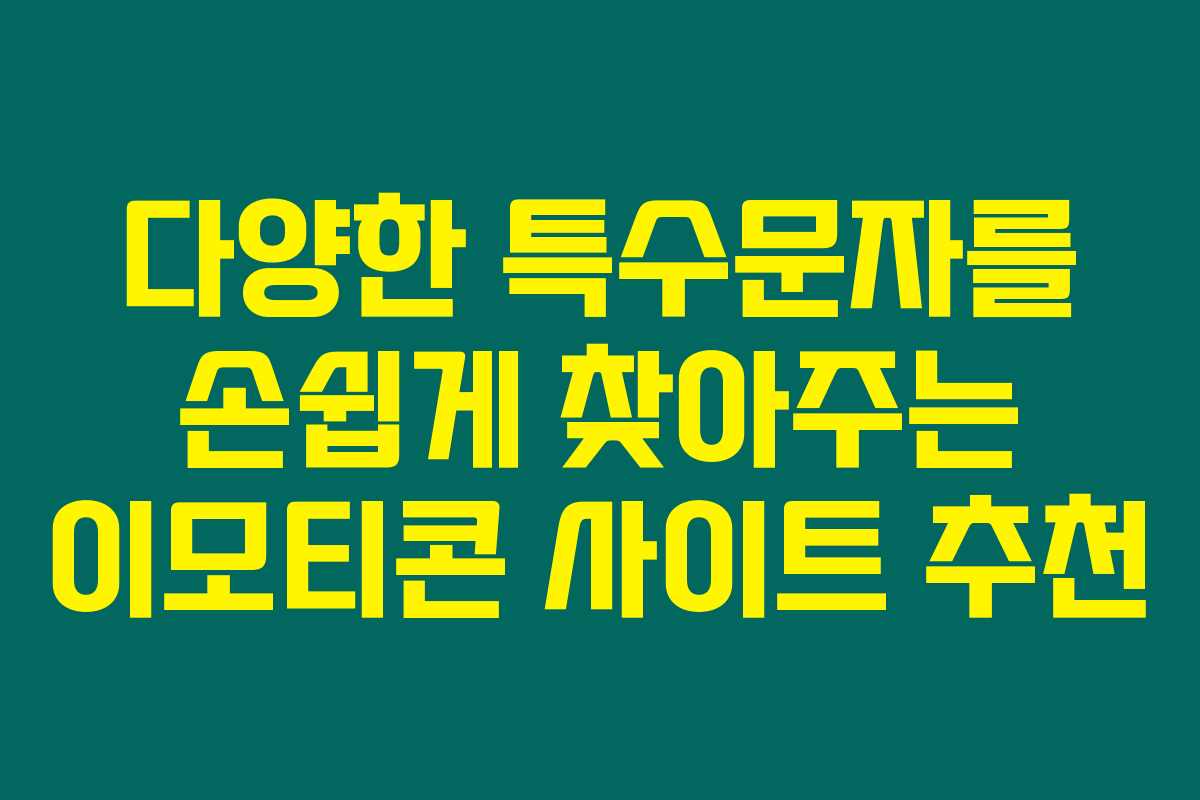 특수문자와 이모티콘을 메신저나 커뮤니티에서 사용하고 싶다면 아래의 추천 사이트를 확인해 보세요. 쉽게 사용할 수 있어서 대화의 재미를 한층 더 높여줄 거예요. 여러분이 원하는 다양한 특수문자와 이모티콘을 찾을 수 있답니다. 특별한 대화를 원한다면 이 글을 놓치면 안 되지요!