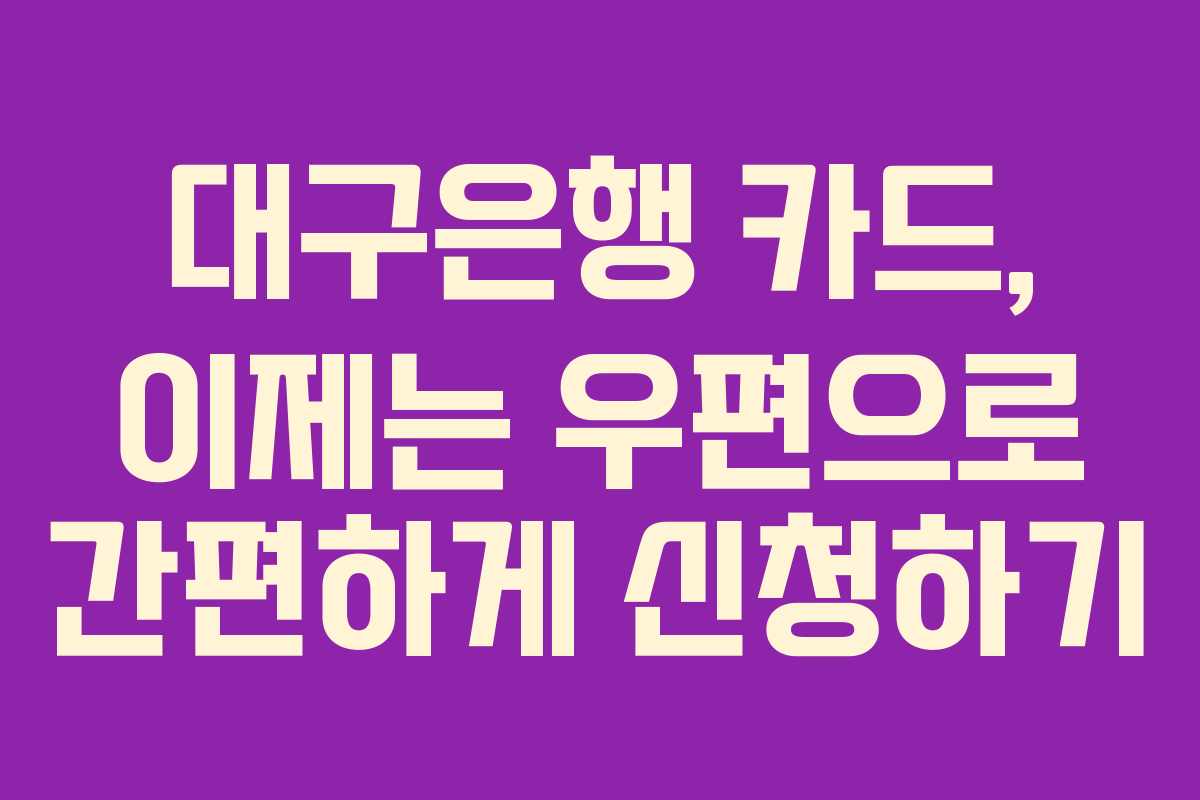최근 대구은행에서는 카드 발급 방식을 간소화하여 고객의 편의를 높이고 있습니다. 이제 대구은행의 실물 카드를 발급받기 위해 영업점을 방문하거나 셀프창구를 이용할 필요 없이 우편으로도 신청할 수 있게 되었습니다. 많은 고객들이 이 변화를 반가워할 것입니다.