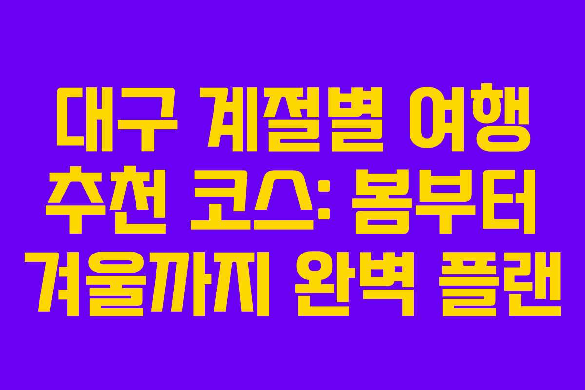 계절마다 특별한 매력을 지닌 대구는 단순한 여행지가 아닙니다. 사계절 내내 새로운 경험을 선사하는 곳입니다. 이 글이 여러분의 대구 여행 계획에 도움이 되길 바랍니다.