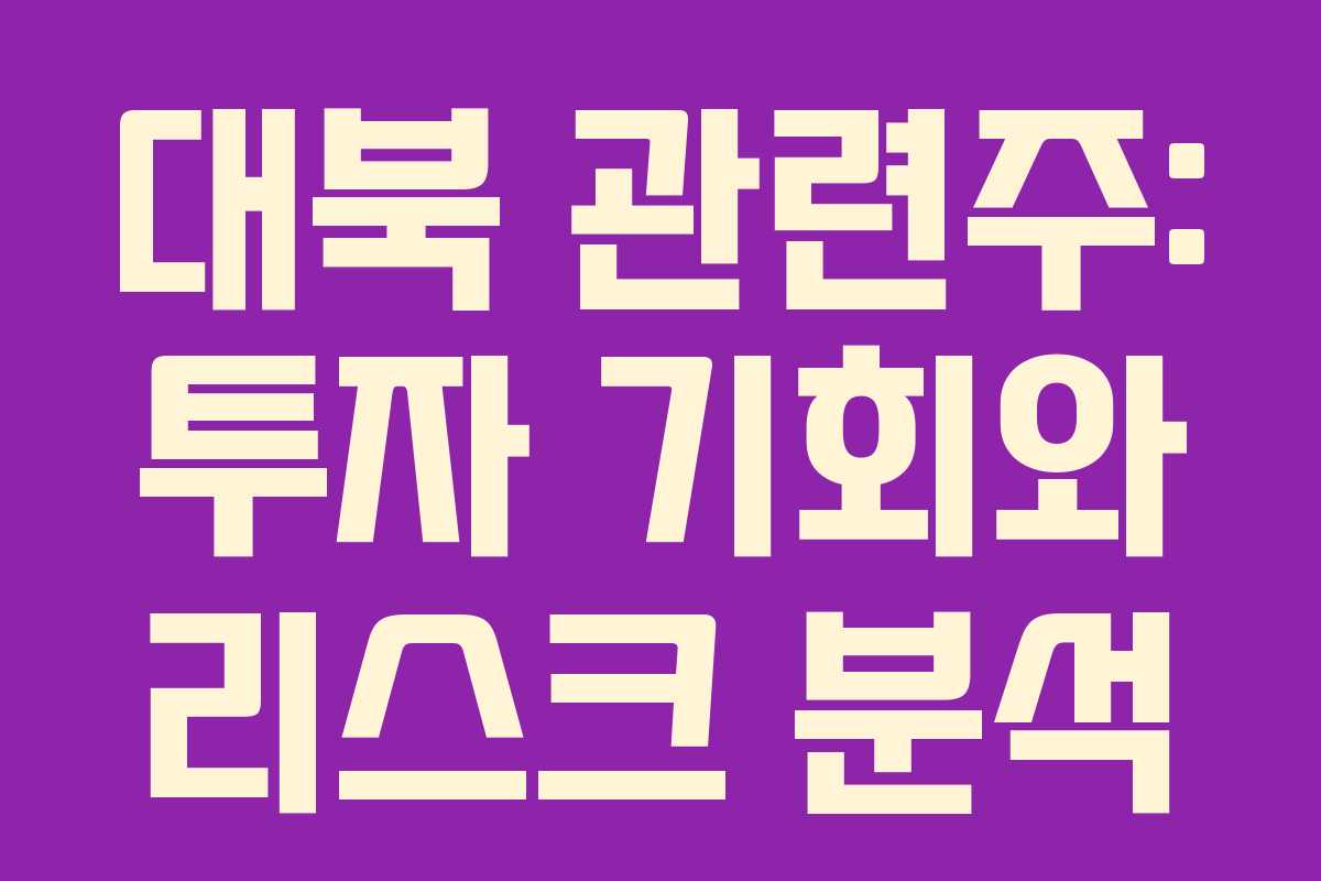 대북 관련주는 북한과의 경제적 연관성이 있는 기업들로, 남북 경제 협력이나 교류가 이루어질 가능성이 있는 기업들이 포함됩니다. 이들 기업은 정치적 상황에 따라 주가 변동성이 크며, 대표적으로 건설사, 관광업체, 자원 개발 기업 등이 있습니다.