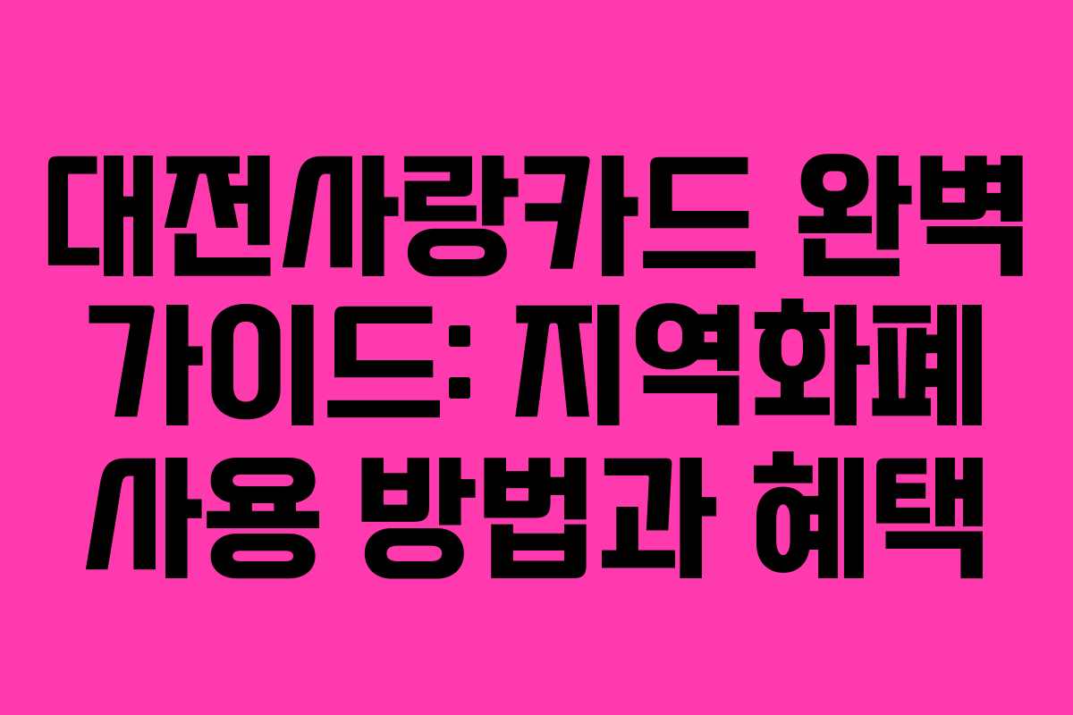 대전사랑카드는 대전광역시에서 발행하는 지역화폐로, 지역 내 소상공인 가맹점에서 사용 가능합니다. 소비를 줄이고 생활비 부담을 덜 수 있는 이 카드의 발급 및 사용 방법을 자세히 알아보겠습니다.