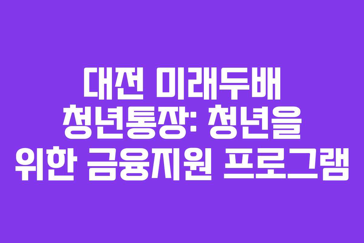 대전 미래두배 청년통장: 청년을 위한 금융지원 프로그램