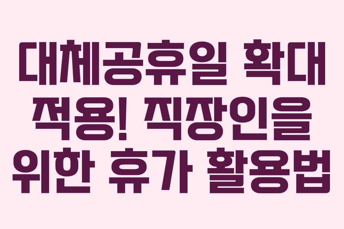 직장인들에게 공휴일은 중요한 휴식의 기회를 제공합니다. 특히 대체공휴일이 확대 적용되면서 더욱 기대가 커지고 있습니다. 이번 글에서는 대체공휴일의 의미와 활용 방법에 대해 알아보겠습니다.