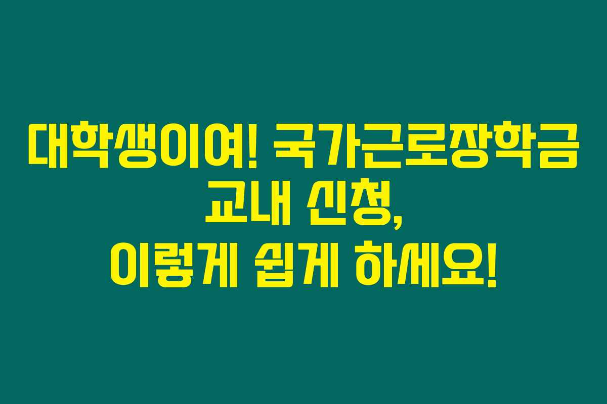 대학생 알바로서 국가근로장학금 교내 신청은 여러분의 경제적 부담을 덜어줄 수 있는 좋은 기회랍니다. 시간을 잘 활용하고 교내에서의 경험을 쌓으며 성공적인 대학 생활을 누리시길 바랍니다! 궁금한 점이 있다면 언제든지 댓글 남겨주세요.