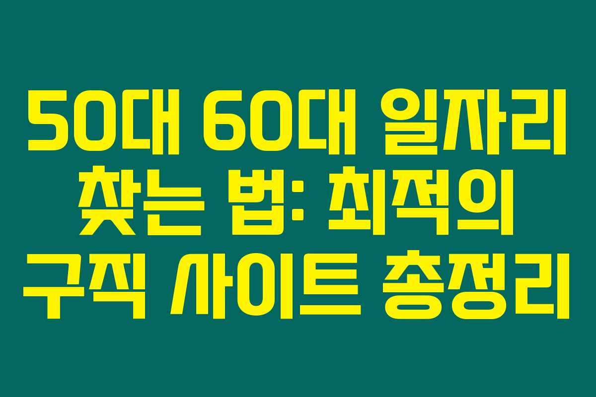 50대와 60대 분들이 일자리를 찾는 건 정말 쉽지 않지요? 은퇴 후에도 경제 활동을 계속하고자 하는 분들이 많지만 좋은 일자리 찾기가 여전히 어렵다고 하더라고요. 만약 이런 고민을 하고 계시다면, 아래의 유용한 구직 사이트 정보를 놓치지 마세요. 다양한 중장년층을 위한 전문 구직 사이트를 소개하며, 각 사이트의 특징과 장점도 자세히 설명할게요.