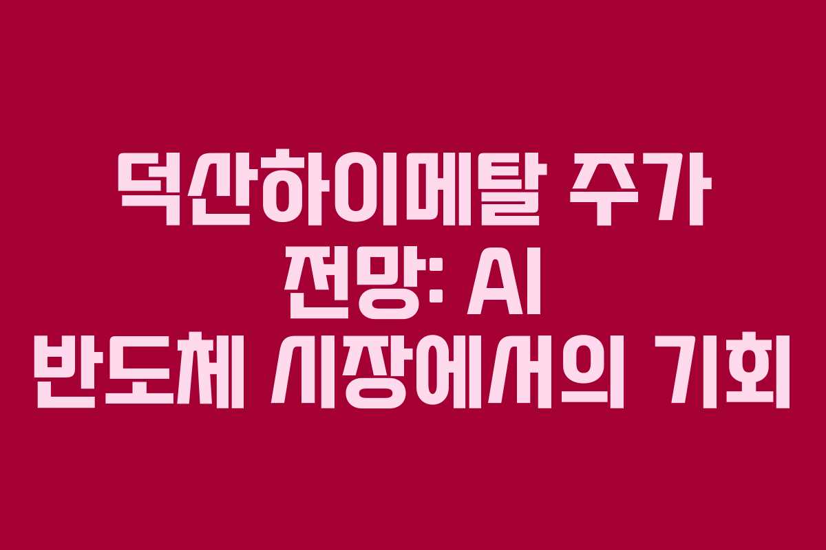 덕산하이메탈은 AI 반도체 시장의 성장과 함께 긍정적인 신호를 보이고 있는 기업입니다. 그러나 단기 급등에 따른 변동성에 유의해야 합니다. 주가 조정 시 4,800원~5,000원 구간에서 분할 매수하는 전략이 유효할 것입니다. AI 시장의 성장을 믿는 투자자라면 중장기적인 관점에서 포트폴리오에 편입할 수 있는 매력적인 종목입니다.
