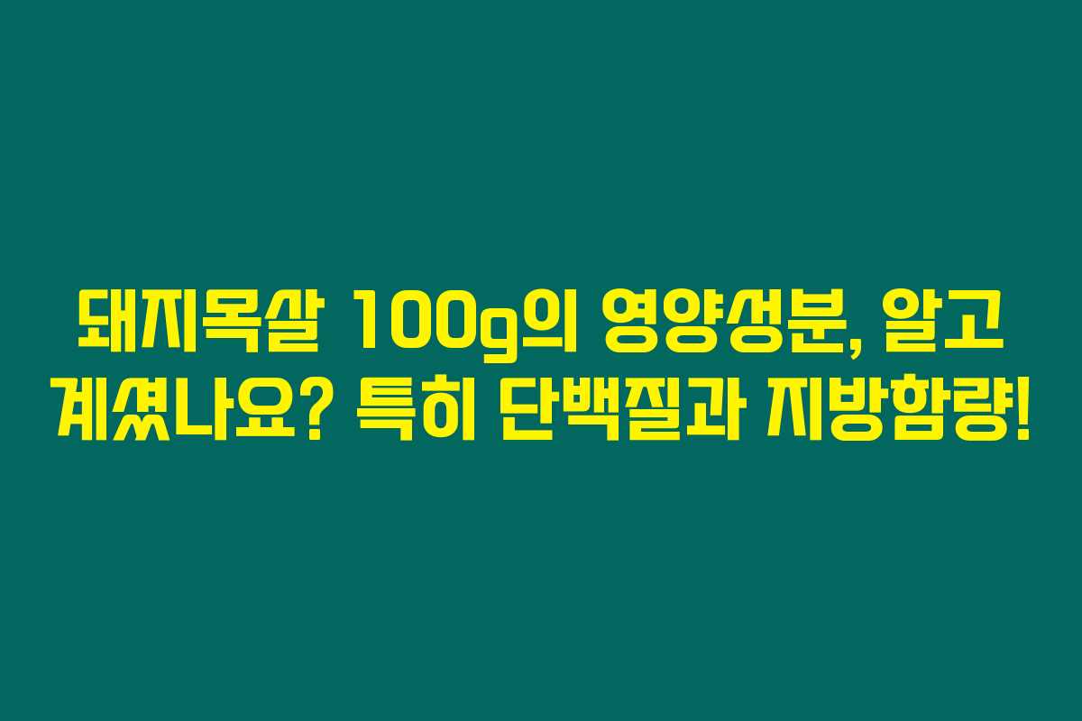 돼지목살에 대해 궁금하신가요? 혹시 돼지목살을 즐겨 드시는데 영양성분을 정확히 모르고 드신다면 나중에 후회할지도 몰라요. 특히 단백질과 지방 함량은 식단 관리에 정말 중요한 요소가 되거든요. 그러니 아래를 읽어보시면 돼지목살의 영양성분이 얼마나 흥미로운지, 그리고 어떻게 활용할 수 있을지를 알 수 있어요.