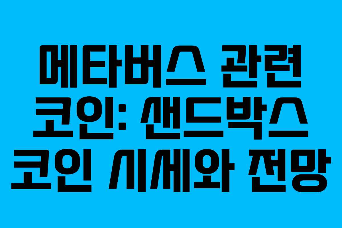 최근 메타버스 관련 코인들이 주목받고 있습니다. 특히 샌드박스(SAND) 코인은 메타버스 플랫폼에서 가상 부동산과 게임 관련 거래를 지원하는 중요한 암호화폐로 자리잡고 있습니다.