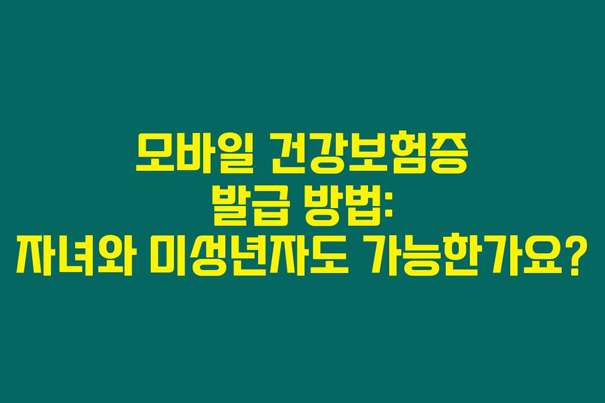 모바일 건강보험증 발급 방법: 자녀와 미성년자도 가능한가요?