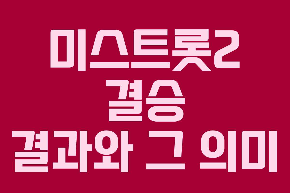 ‘미스트롯2’는 역대 최고 상금과 시청률, 최대 참가자 수를 기록하며 3월 4일 결승 2라운드를 끝으로 대단원의 막을 내렸습니다. 이번 대회는 시청자 문자 투표가 결정적인 역할을 하여 마스터 점수가 별다른 영향을 미치지 않았습니다. 결승 1라운드 결과와 최종 순위를 살펴보겠습니다.