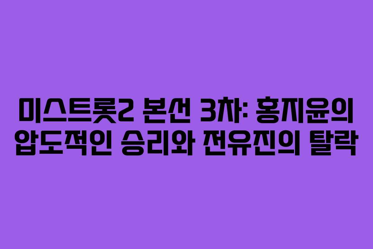 TV조선 ‘미스트롯2’의 본선 3차에서 홍지윤이 압도적인 점수로 진출하며 팀원들을 준결승으로 이끌었습니다. 반면, 전유진은 안타깝게도 탈락의 고배를 마셨습니다. 이번 방송은 2월 4일에 방영되었으며, 메들리 팀 미션 2라운드 에이스전이 진행되었습니다.