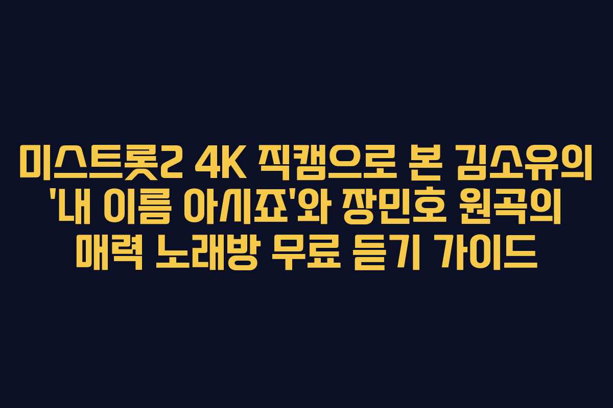 아래를 읽어보시면 트로트의 최고봉 두 버전의 매력을 비교하고 미스트롯2 4K 직캠의 디테일을 파헤치며 김소유의 음색과 장민호의 원곡을 더 깊이 이해하는 방법을 제시합니다 무료 들으려는 분들께 실전 가이드를 제공합니다