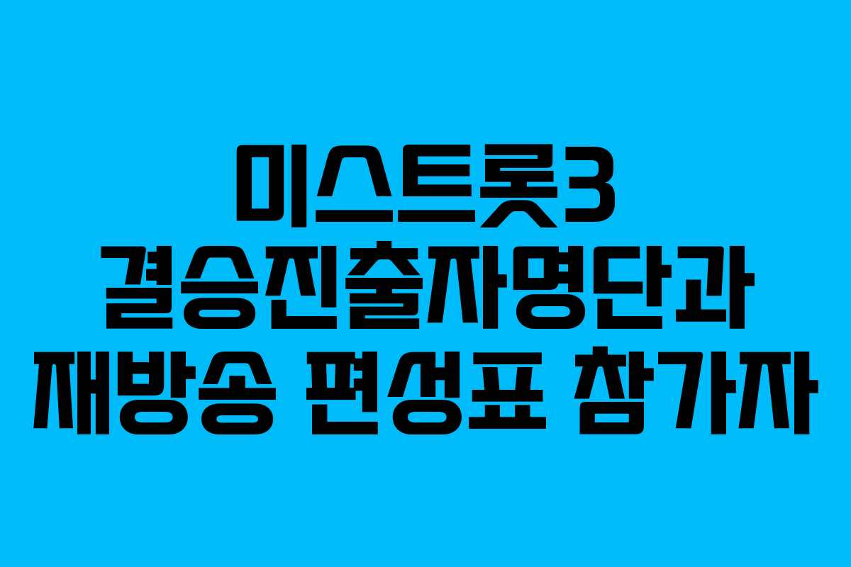 아래를 읽어보시면 미스트롯3 결승진출자명단과 재방송 편성표를 한눈에 확인하고 참가자 구성과 방송 일정의 포인트를 함께 알아봅니다