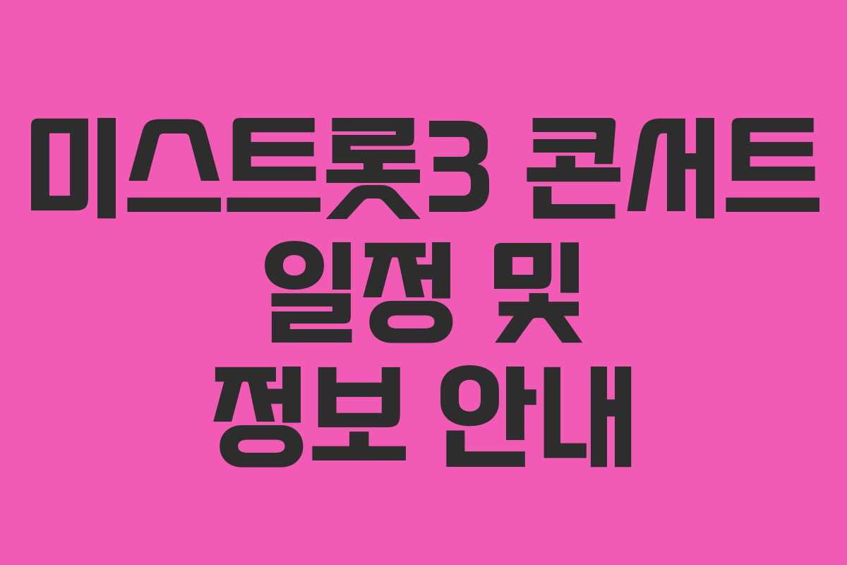 트로트 팬 여러분을 위한 반가운 소식입니다! 미스트롯3 콘서트가 서울을 시작으로 전국 각지에서 개최됩니다. 감동적인 노래와 화려한 무대를 즐길 수 있는 이번 콘서트는 많은 팬들에게 기대를 모으고 있습니다.