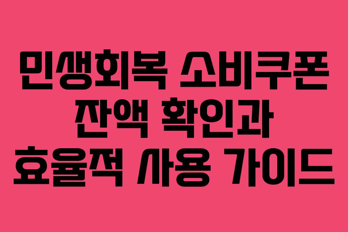 민생회복 소비쿠폰의 잔액 확인과 효율적 활용 방법을 알아보았습니다. 잔액을 확인하고 만료 전까지 알차게 사용하시기 바랍니다. 추가 궁금한 점은 각 카드사 고객센터나 정부 콜센터(110번)로 문의하세요.