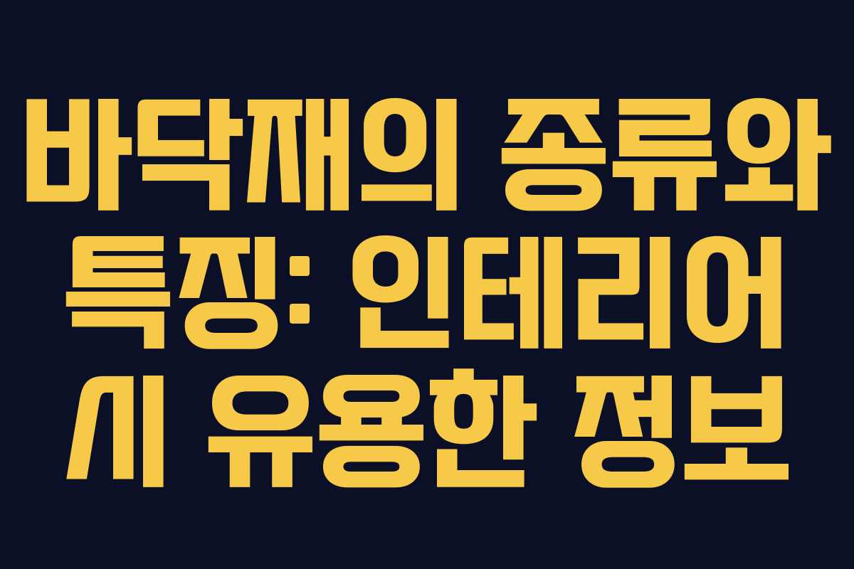 바닥재의 종류와 특징: 인테리어 시 유용한 정보