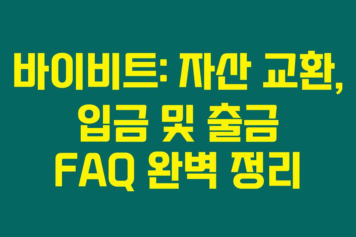 위의 질문을 통해 바이비트에서 자산 교환, 입금, 출금에 대한 이해가 좀 더 깊어지실 거라 믿습니다. 자산 거래에 있어 유의사항과 절차를 잘 숙지하고 안전한 거래 하시길 바랍니다. 필요한 경우 언제든지 문의하세요!