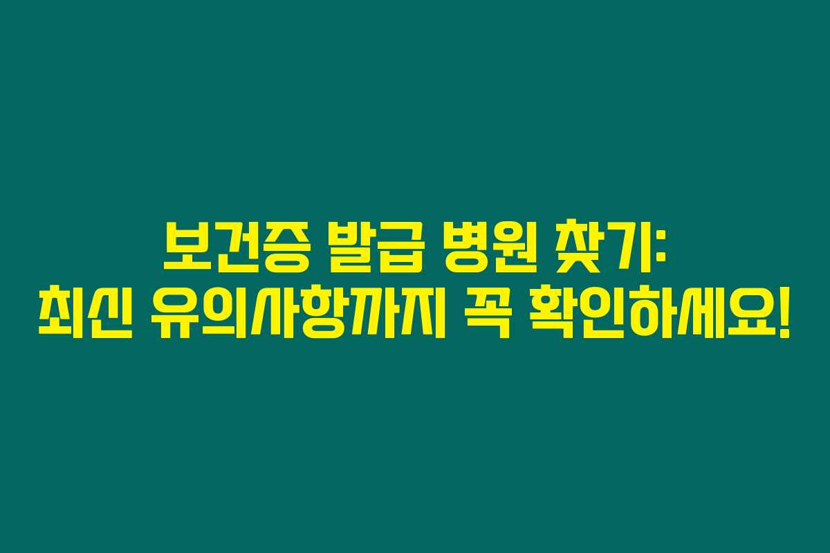 보건증 발급은 간단해 보이지만 실제로 해보면 많은 분들이 어려움을 겪고 있어요. 자칫 헛걸음하기도 쉽고 발급 대기 시간이 길어질 수도 있거든요. 그래서 이번 글에서는 보건증 발급 병원을 찾는 여러 가지 방법과 함께 유의사항도 함께 정리했어요. 꼭 확인해 보세요!