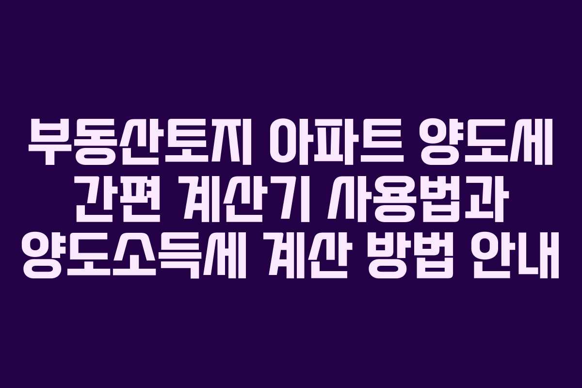 부동산 거래에서 양도소득세는 거래로 얻은 이익에 대해 부과되는 세금으로, 많은 사람들이 이 문제에 직면하게 됩니다. 이번 글에서는 부동산토지와 아파트의 양도세를 쉽게 계산할 수 있는 간편 계산기 사용법과 양도소득세 계산 방법에 대해 자세히 설명하겠습니다.