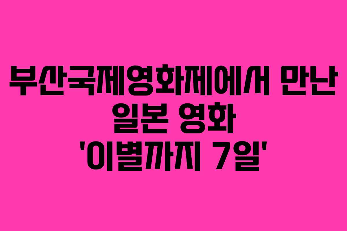 부산국제영화제에서의 ‘이별까지 7일’ 상영은 관객들과의 소통을 통해 더욱 깊이 있는 경험이 되었습니다. 감독과의 대화는 영화에 대한 이해를 높이는 데 큰 도움이 되었으며, 이 영화는 많은 이들에게 감동과 여운을 남길 것입니다.