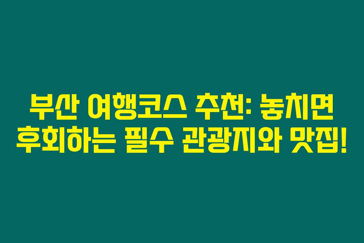 부산 여행을 계획 중인 분이라면, 아래의 정보를 꼭 확인해보세요! 부산은 다양한 아름다운 관광지와 맛있는 먹거리가 있는 곳이랍니다. 특히 1박 2일이나 2박 3일 여행 코스를 고민 중이라면, 아래에 소개하는 가볼만한 곳과 맛집은 반드시 포함해야 할 목록이에요. 궁금하시죠?