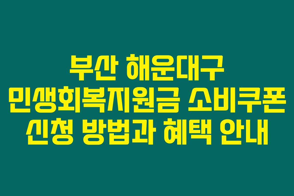 2025년 부산 해운대구 주민들은 민생회복지원금 소비쿠폰을 통해 최대 52만 원까지 지원받을 수 있는 기회를 놓치지 마세요. 이 기회를 잘 활용하면 많은 혜택을 누릴 수 있답니다. 아래를 읽어보시면 빠른 신청 방법과 필요한 정보를 확인할 수 있어요!