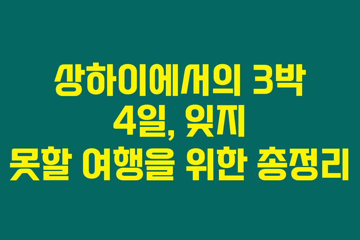 제가 직접 경험해본 결과로는, 상하이는 현대와 전통이 공존하는 도시로, 매력적인 관광명소와 풍부한 문화가 가득한 곳입니다. 3박 4일 동안의 일정은 정말 빡빡했지만, 다양한 맛집과 쇼핑, 그리고 멋진 풍경을 만끽할 수 있는 기회였어요. 아래를 읽어보시면, 상하이 여행을 계획하는 데 많은 도움이 될 거예요.