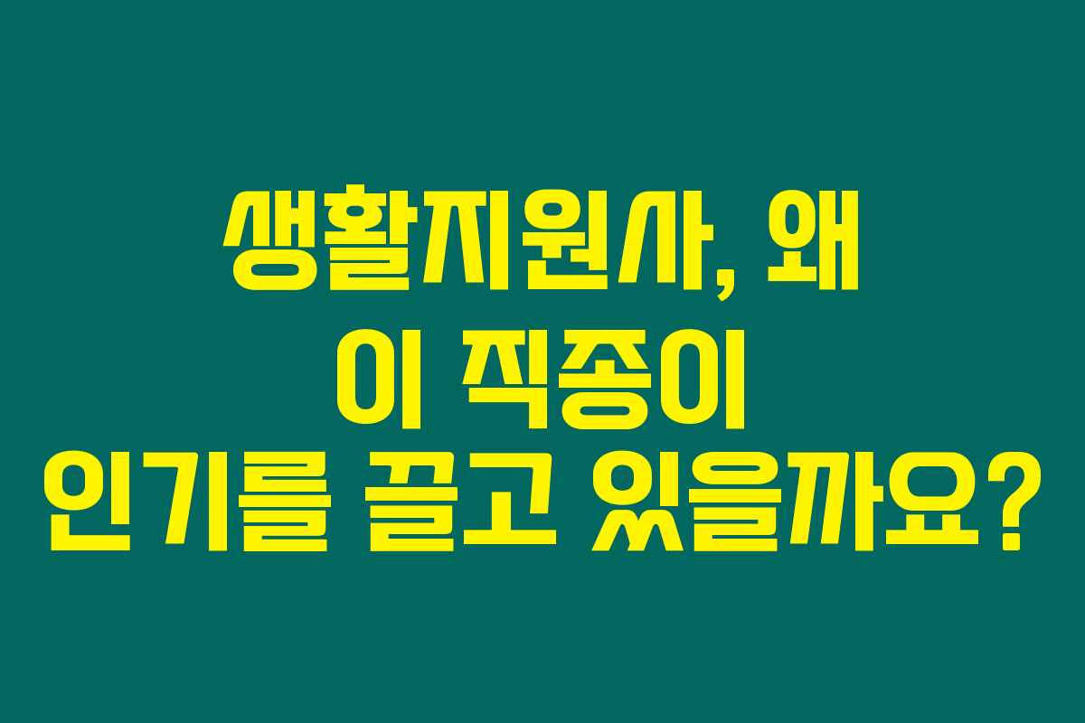 생활지원사 직업은 단순한 일자리를 넘어 사회에 기여하며, 나름의 보람을 느낄 수 있는 매력적인 직종이라고 할 수 있습니다. 젊은 세대가 아니라 중장년층에게는 특히 필요한 분야이며, 앞으로의 복지 수요에 대비할 수 있는 중요한 커리어가 될 것입니다. 이런 변화 속에서 여러분의 새로운 도전을 기대해봅니다!
